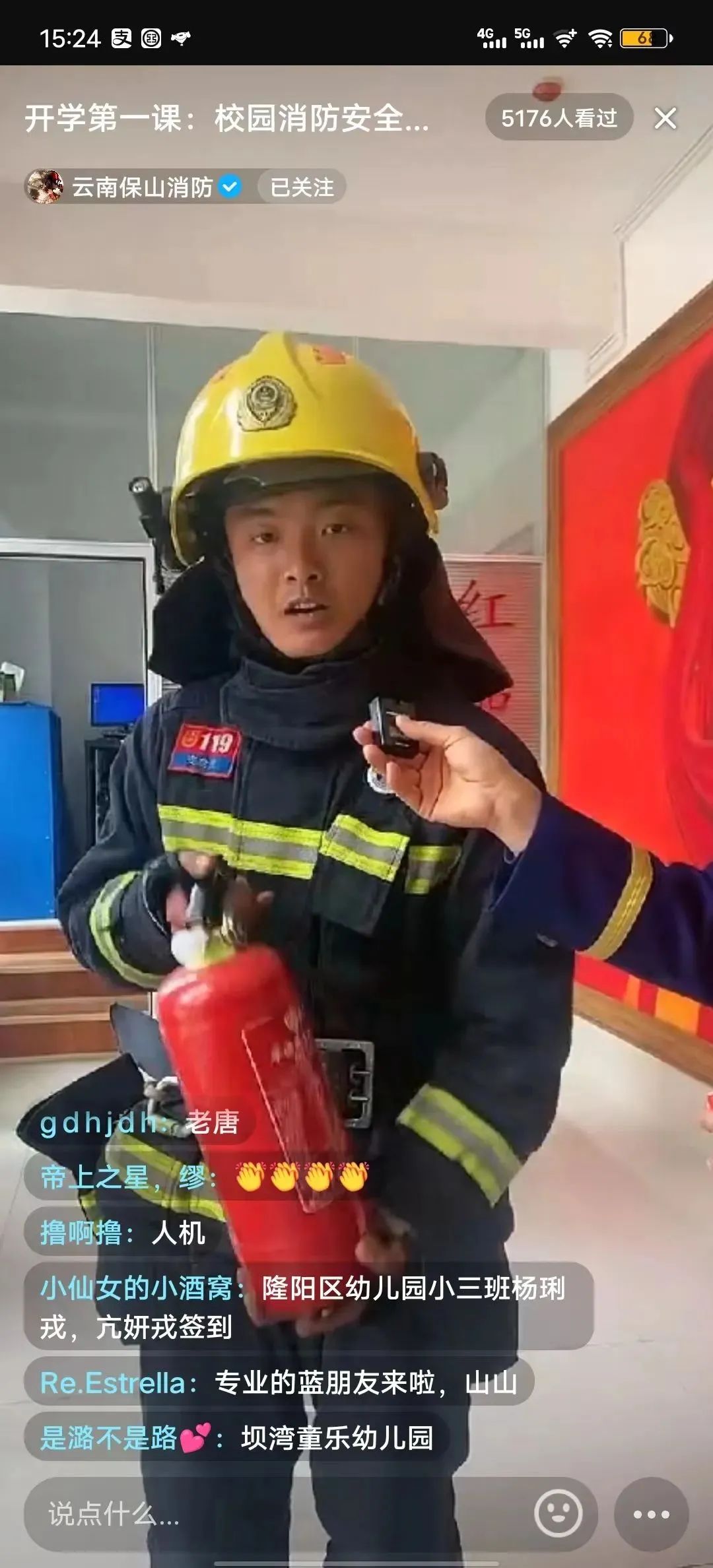 新學期伊始為進一步做好校園消防安全工作近期,全省各級消防救援隊伍持續(xù)開展校園消防安全宣傳活動集中排查校園消防安全隱患為師生創(chuàng)造了一個安全、穩(wěn)定、和諧的育人環(huán)境保山網(wǎng)絡直播開啟第一課保山市消防救援支隊聯(lián)合市教育體育局通過抖音、快手、微信視頻號等新媒體平臺,開展了校園消防安全“開學第一課”網(wǎng)絡直播活動,通過對廣大師生和家長進行“云教學”“云互動”,大力科普消防安全常識,提高自防自救能力。